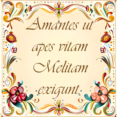 Der Künstler hat eine Sammlung Lateinische Sprüche, in Blumen umrankete Rahmen, mit kalligraphischen Schrift versehen.